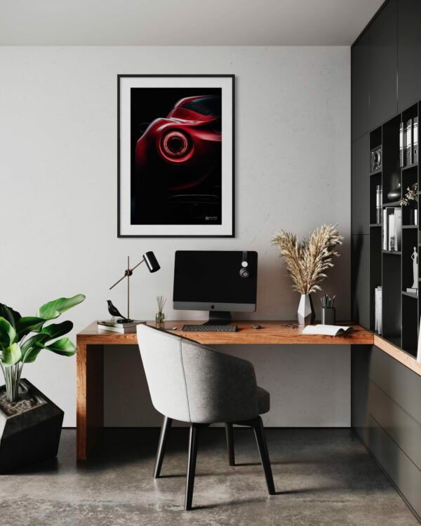Cette image s’inscrit dans une démarche fine art automobile, idéale pour une décoration murale contemporaine, un espace design ou une collection photographique dédiée à l’univers automobile haut de gamme et à l’esthétique futuriste.